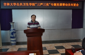 “三严三实”专题教育要扎实做好五个关键动作,一要讲好专题党课,坚持领导带头、以上率下,充分发挥示范带头作用;二要组织好专题学习研讨,重点从“严于律己、严于修身、严于用权”三个专题开展;三要抓好自查自纠工作,查摆问题是这次专题教育的关键;四要召开好专题民主生活会和组织生活会;五要抓好整改落实和立规执纪。同时把握四个突出:“突出责任、突出问题导向、突出以上率下、突出两手抓两促进”。最后钟书记向全院党员教职工队伍、学生队伍发出动员:“三严三实”与每一个公卫人休戚相关,全院党员应当围绕学院新一轮的改革创新发展,贡献我们每一个人的才智和力量。