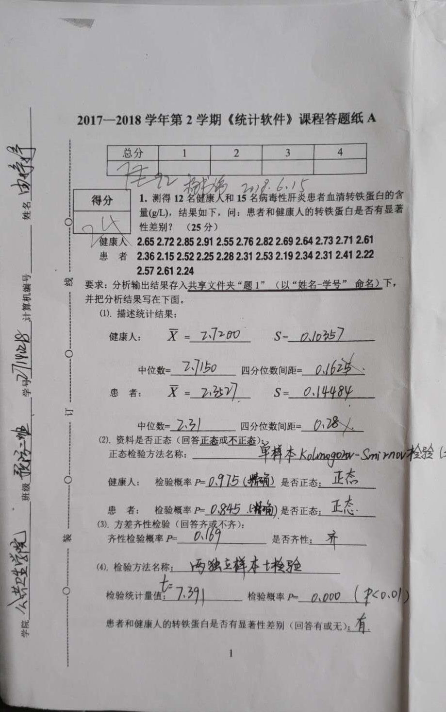 学院2014级由婷婷同学(27140218)2017-2018-2《医学统计软件应用》成绩更正如下:
