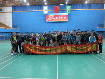 师生羽毛球对抗赛。20余位学院教师在钟绍峰书记的带领下组成教师联队,40余位本科生、研究生在团委负责人苏国范老师的带领下组成学生联队,对抗赛在天翼羽毛球俱乐部举行。