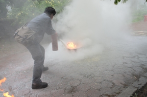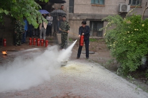 在三楼学术报告厅召开了全院教职工大会,对安全防火工作进行了宣讲。会后进行了灭火实战演练。