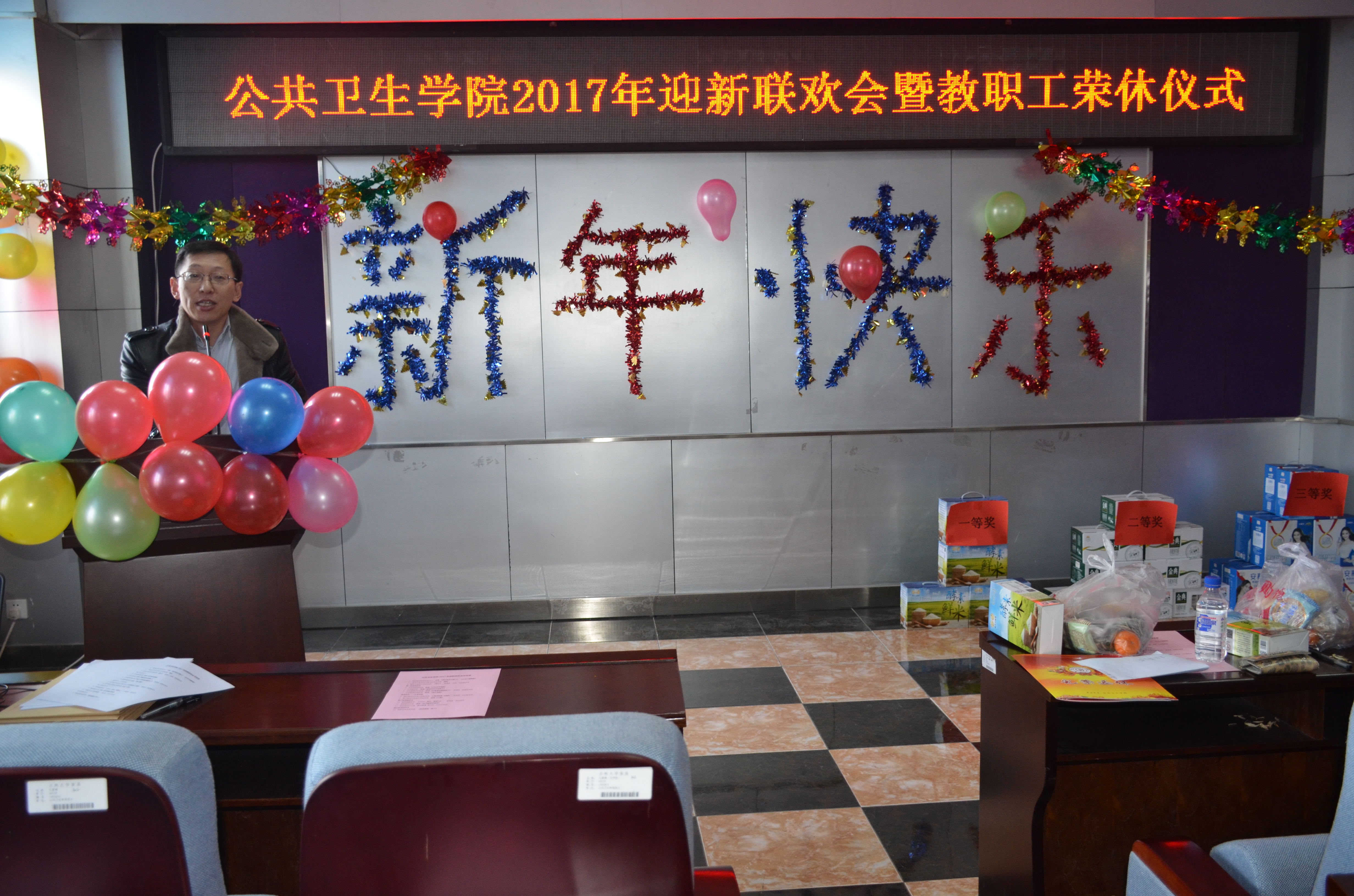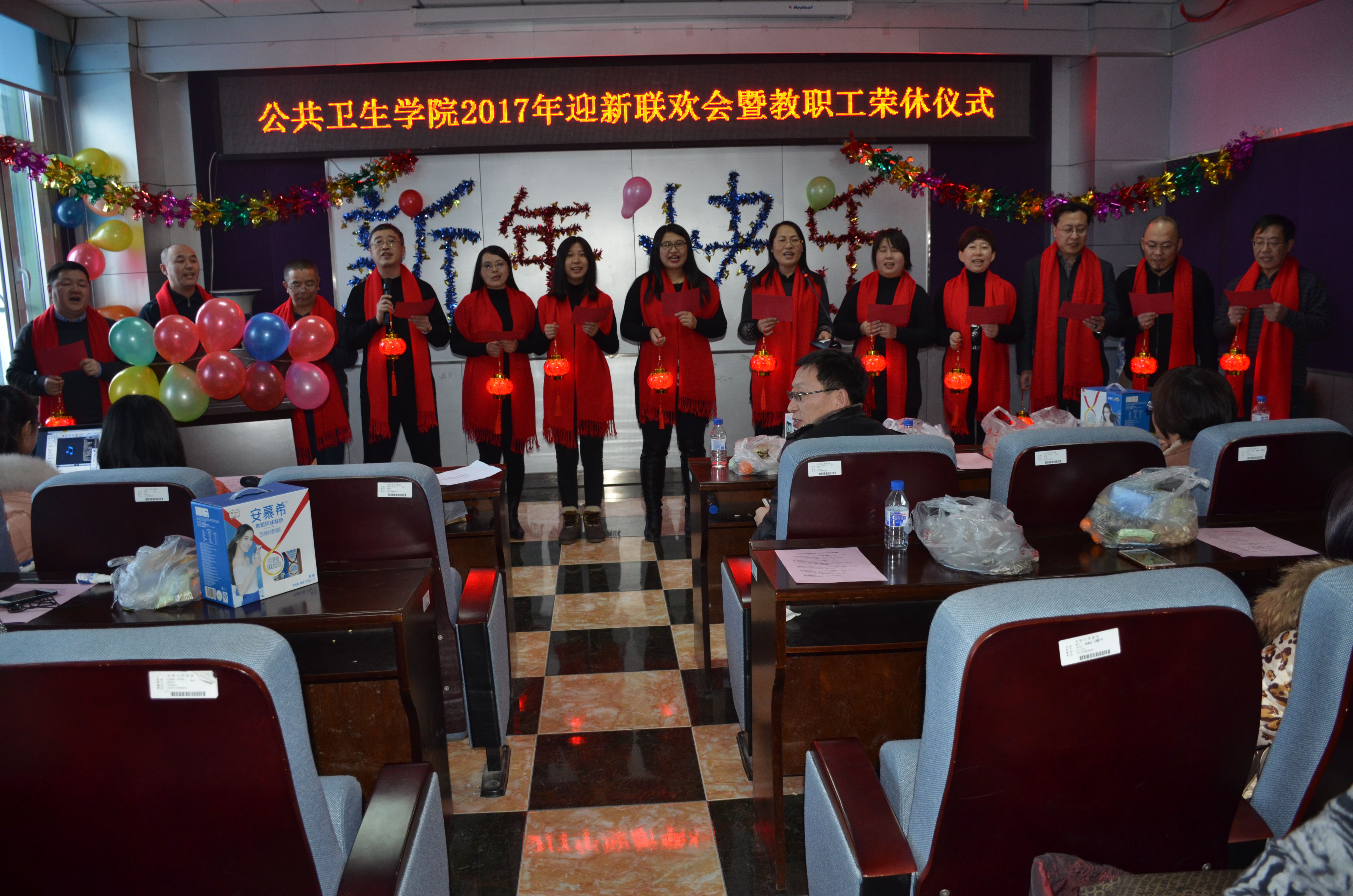 于1月13日下午1:00在学院三楼报告厅举行了“2017年迎新联欢会暨教职工荣休仪式大会”,会议由钟绍峰书记主持,全院教职工参加。