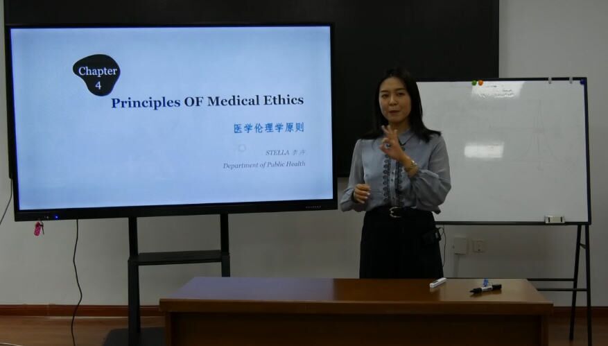 本次共有10位优秀青年教师参加比赛,其中4位教师参与双语教学大赛。学院利用超星平台向全院师生及进行同步线上直播,观看各位参赛教师讲课风采。比赛由教学副院长寇长贵教授主持,分别邀请放射医学系主任金顺子教授、预防医学系主任叶琳教授、医学信息学系王伟教授作为现场点评嘉宾评委,另外有6位教师及5位同学作为线上评委对参赛教师进行在线打分。