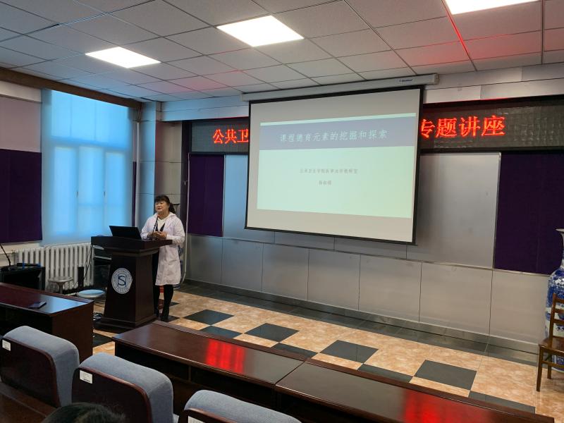 社会医学与医事法学系主任杨淑娟教授以“课程德育元素的挖掘和探索”为题,根据教育部《高等学校课程思政建设指导纲要》的总体思路,以《卫生法学》课程为例与全院教师分享了如何将课程思政元素融入到教学中的做法与经验。