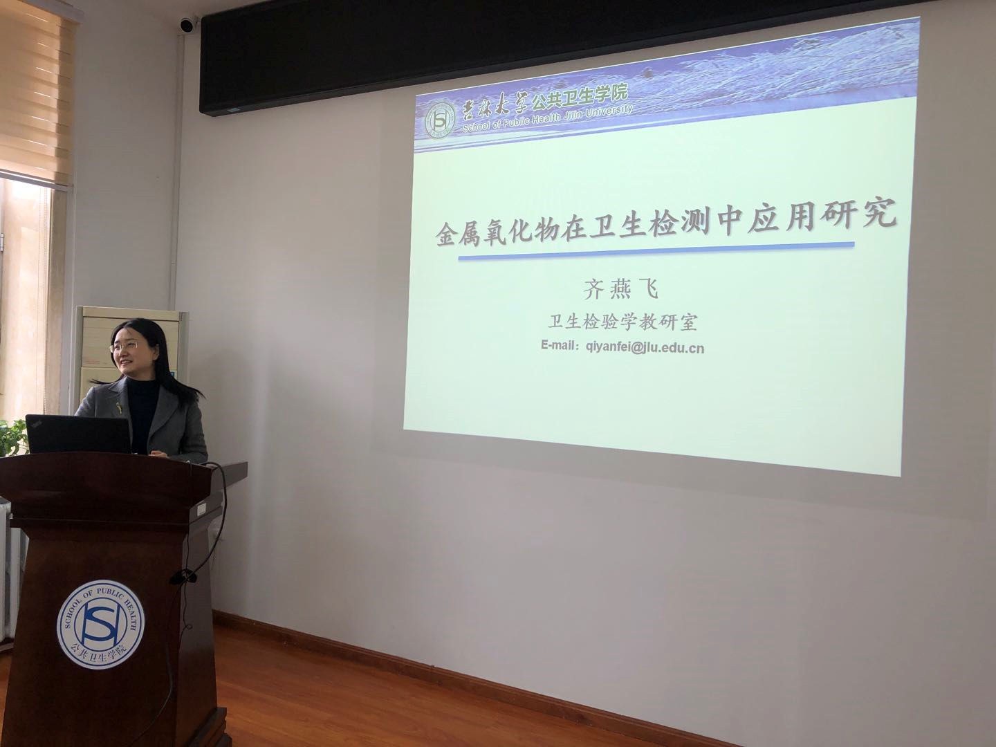 本次交流活动,来自卫生检验教研室的齐燕飞教授和信息管理教研室的冯佳副教授分别进行了题目为《金属氧化物在卫生检测中的应用研究》和《吉林省老年肿瘤患者共病模式分析》的学术讲座。参会人员针对金属氧化物的应用和吉林省共病的现状等内容进行了交流和讨论。本次活动促进学院青年学者的学术交流。