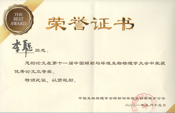 金顺子教授被聘任为第十一届中国生物物理学会辐射与环境生物物理学分会常务理事,王志成副教授被聘任为理事,申延男副教授为青年委员。