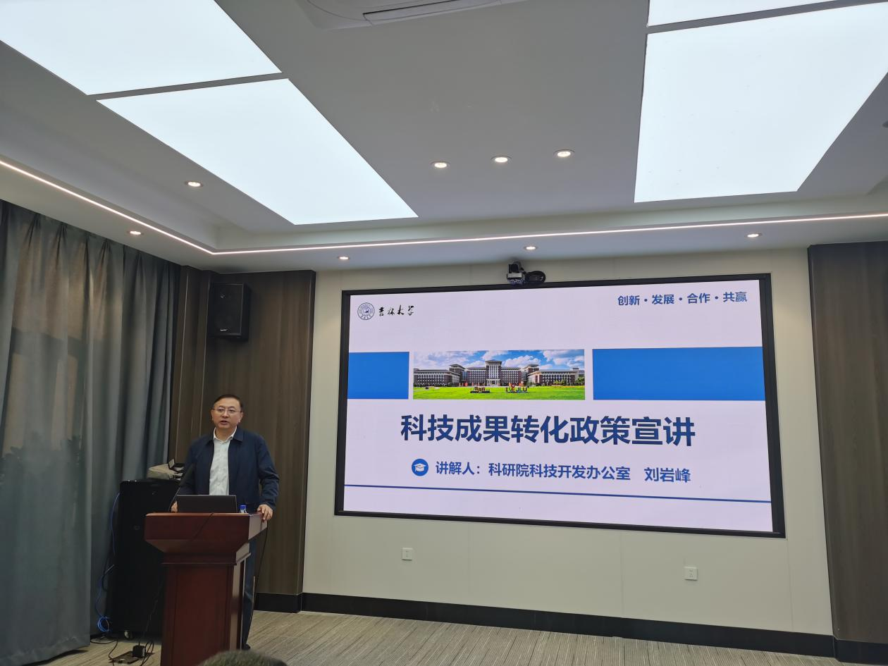 为进一步推动禁漫天堂 科技成果转化工作,实现科技成果转化数量和质量的双重提升,10月25日上午,禁漫天堂 邀请科研院副院长兼科技开发办公室主任、国内合作处处长刘岩峰作科技成果转化政策宣讲会,技术转移科科长徐婉、朱梓瑞老师、禁漫天堂 党委书记赵国利以及全院教师参加本次会议。本次会议由禁漫天堂 副院长王娟主持。