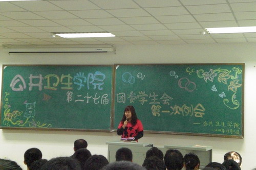会上,学生会主席刘畅对所有11级学生会新成员表示欢迎,并为大家介绍了此次大会的流程。接着,学生会各部的新成员依次上台进行自我介绍,体育部等八个部的代表对本学期开学以来的各部工作进行了总结,并对未来短期内的工作做了规划和展望。