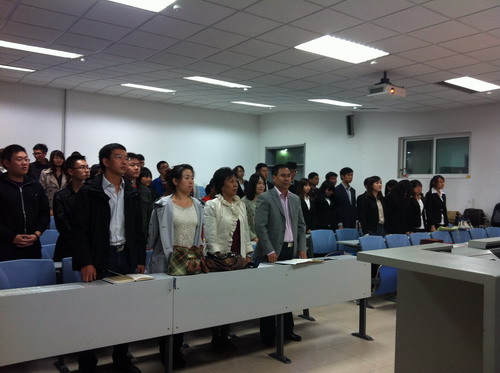 在新民二教2103室举行了第28届团委换届大会。学院党委副书记兼副院长于洗河,学生工作办公室主任吴晓辉,辅导员苏国范、曲超老师,第27届团委副书记亓悦以及全体团委成员、各届班级团支书出席了此次会议。