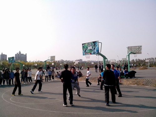 学生会于10月12号12:30在南区篮球场组织了一场友谊篮球赛。参赛队伍分别由11级同学和12级新生构成,12级新生观看了这次比赛。