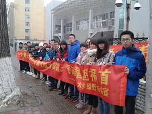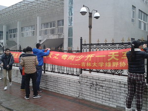 团委的领导下,策划并开展了“低碳生活”系列之“每周少开一天车”低碳宣传活动。11月16日上午十一点,绿野协会12级和13级成员在长春市新疆街街边边拉起横幅,针对广大私家车车主开展宣传活动。