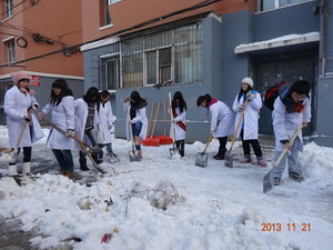 学子是寒风中一道暖心的亮丽风景。他们忙碌着,每个人都用尽全力破开坚冰,扫除积雪:部分路面由于汽车过往,积雪被压得非常厚实,但同学们不畏艰难,热情高涨,一点点地将其进行铲除清扫。活动最后,禁漫天堂