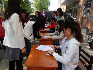 志愿者工作部在新民校区第一教学楼前举行了世界禁烟日系列活动之走进校园活动。