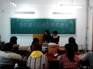 记者站和学生会宣传部联合举办的针对2013级、2014级文艺委员和宣传委员的培训于新民校区第一教学楼102教室成功举办。