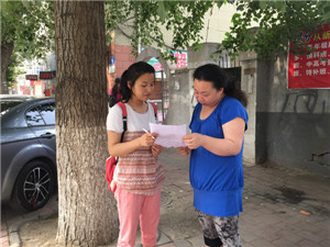 组织的大学生暑期社会实践服务团队走访了朝阳区永昌街道义和路社区,对城市居民进行调查。