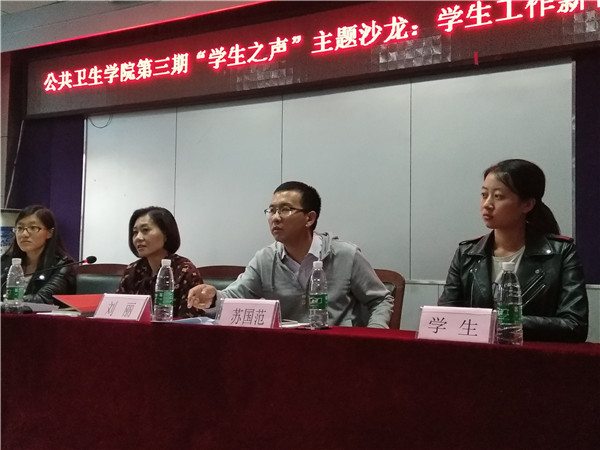 第三期“学生之声”主题沙龙活动在学院办公楼三楼报告厅成功举行。学院党委副书记兼副院长、2014级辅导员刘丽,团委书记兼2015级辅导员苏国范,2016级辅导员霍睿,2017级辅导员郭倩君,以及各年级学生代表参加了本次沙龙活动。本期活动以“学生工作新畅想”为主题,学生代表们针对学生事务处理和学生工作要求提出了具体的建议,参与活动的老师也细心地答复问题、第一时间了解了学生们的想法。