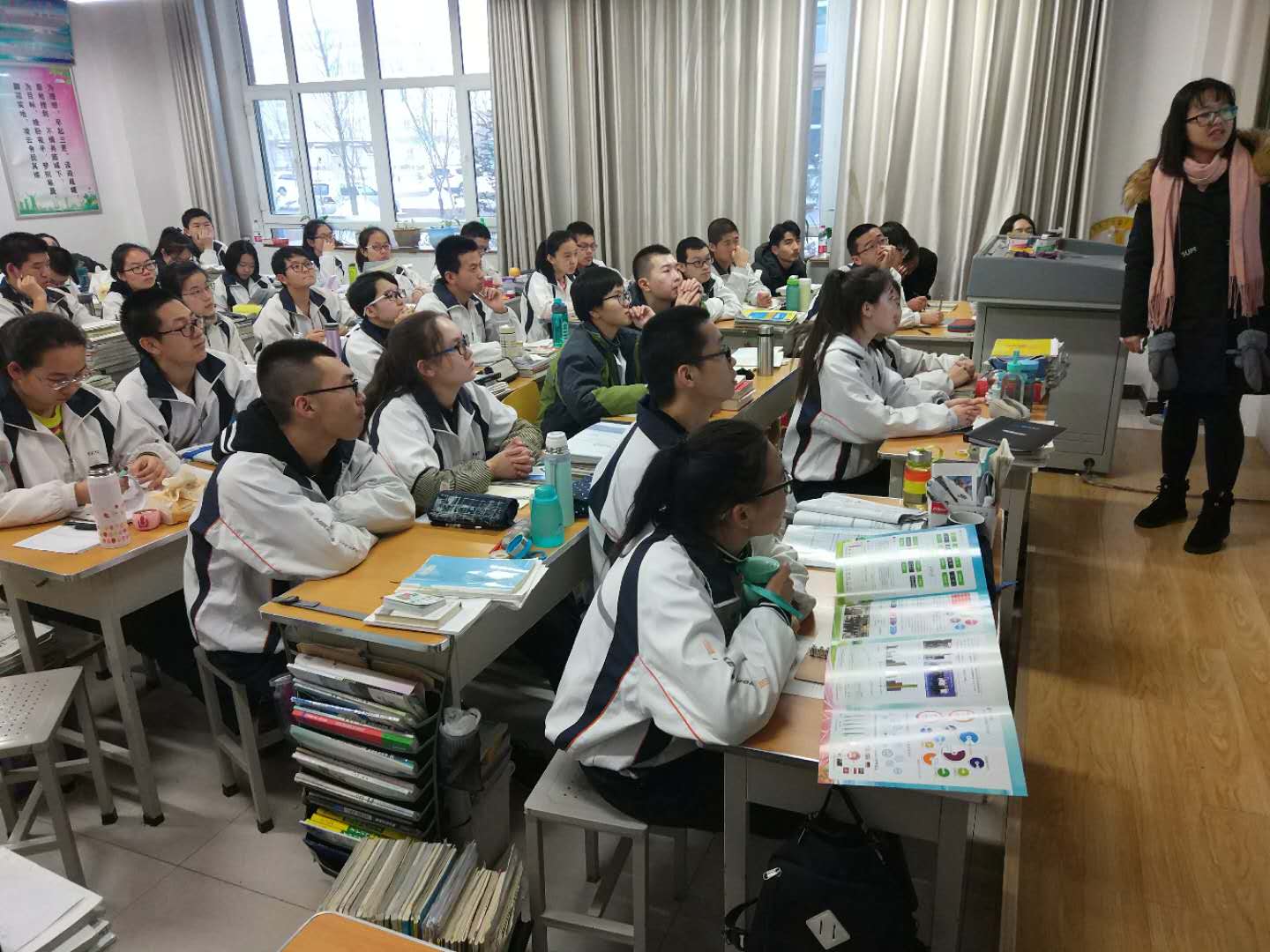 1月29日下午,招生宣传团第一小分队的志愿者们走进了新疆维吾尔自治区阜康第一中学,展开了面向高三学生的宣讲。宣讲伊始,志愿者们结合PPT向高三学生详细介绍了禁漫天堂