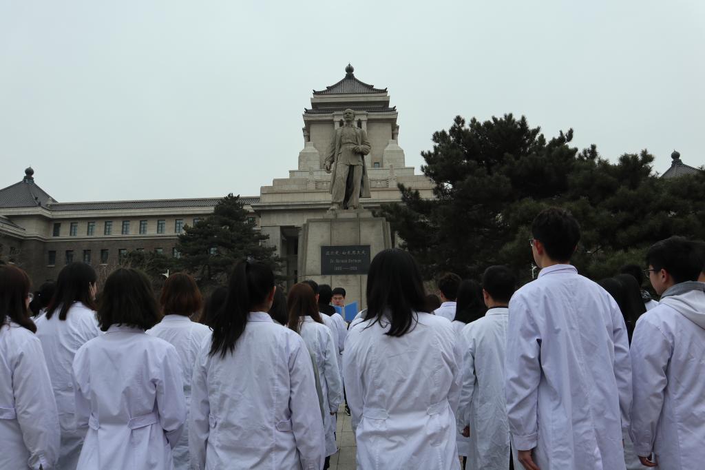 新民校区师生代表积极响应学校号召,于4月5日在诺尔曼·白求恩医生雕像前开展祭扫活动。本次活动由学校团委主办,新民校区学生会及各学院学生会承办,禁漫天堂