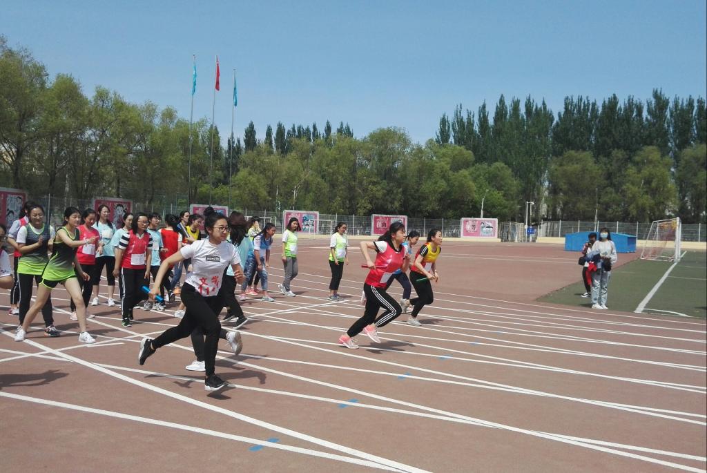 的8位女运动员们身着粉色运动衣在第5跑道依次站好。8个人分为两拨,各站在跑道的两侧,准备来回接力。随着第一声哨响,预防三班的刘燕以最快的速度跑向第二位接力选手,但第一棒的其他选手也来势汹汹,毫不示弱。接着,第二棒的刘鑫乘胜追击,奋力向前冲。跑道两边的呼喊加油声也随之热烈起来。但开始的良好势头没有持续很久,女运动员们虽然发挥出了全部的力气去跑,因为对手也很强劲,所以开门红的局面渐渐转变。但最后一位女运动奋力一搏,没有将比分拉的很大。