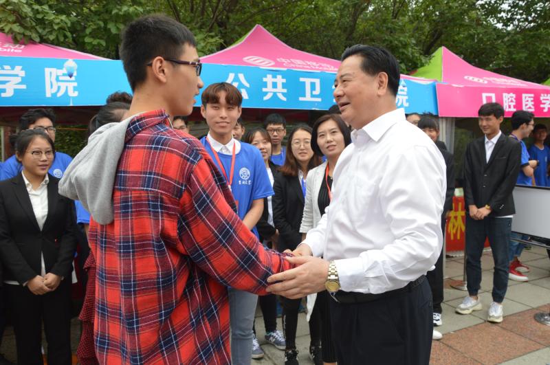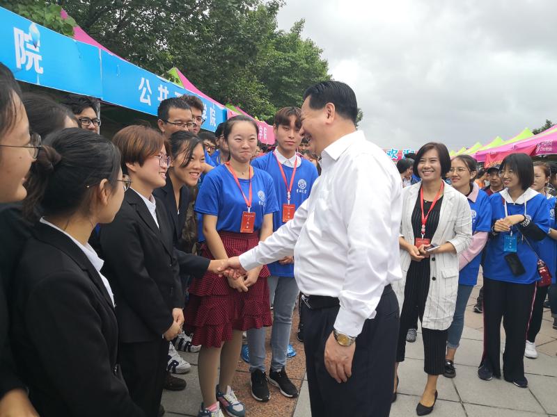迎新现场,慰问参与迎新工作的师生,与大家亲切握手交流并对大家辛勤的付出表示感谢。一名刚刚办理完入学手续的新生想与校长合影留念,校长欣然同意并热心询问他入学报道的情况。此外,校长还叮嘱新生和志愿者们雨天要注意保暖,以防生病。随后,李校长在了解迎新工作的基本情况之后,对学院的工作给予了高度肯定,并与禁漫天堂
