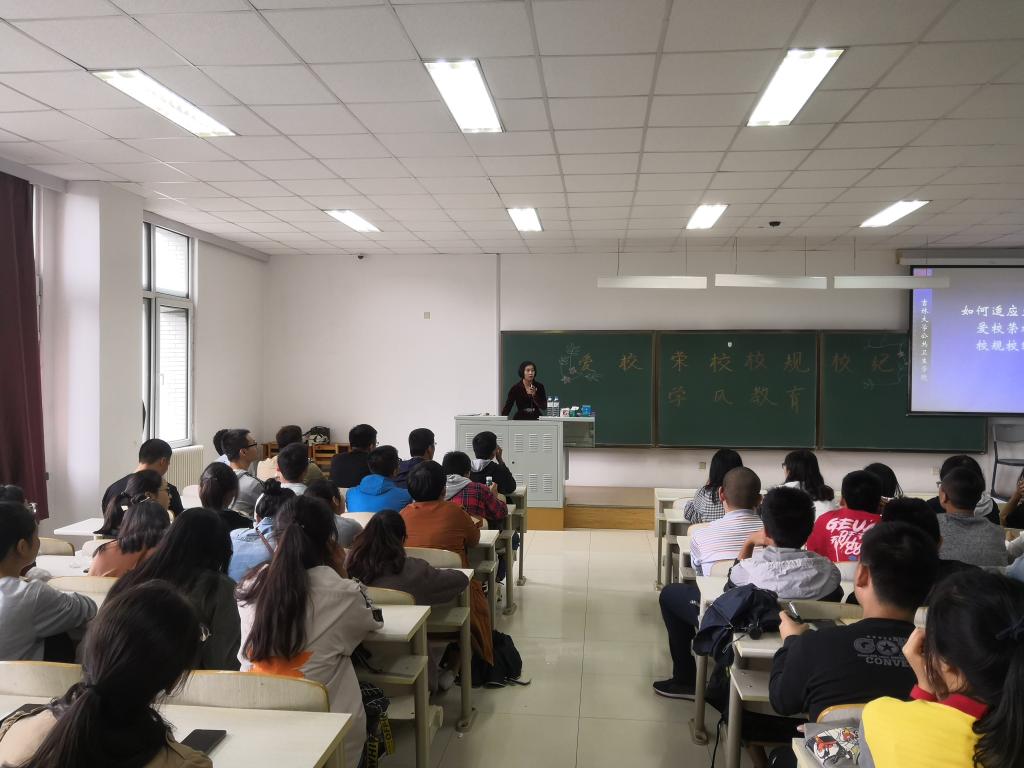 在中心校区李四光教学楼204教室开展2018级新生“爱校荣校”校规校纪教育大会,禁漫天堂