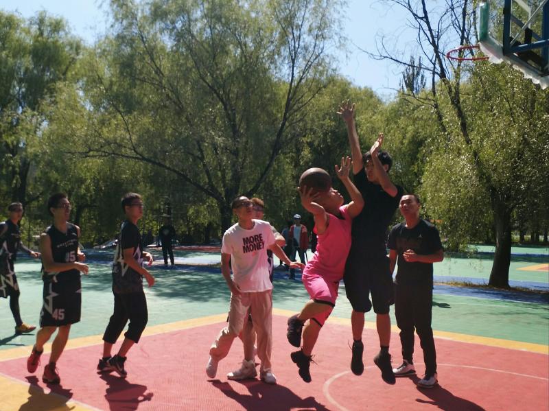 在中心校区篮球场成功举办了2018级新生篮球赛,比赛双方分别是由贺庆浩、崔明乙等2018级同学组成的新生联队,与由王兆丰、申禹轩等2015级、2016级同学组成的高年级联队