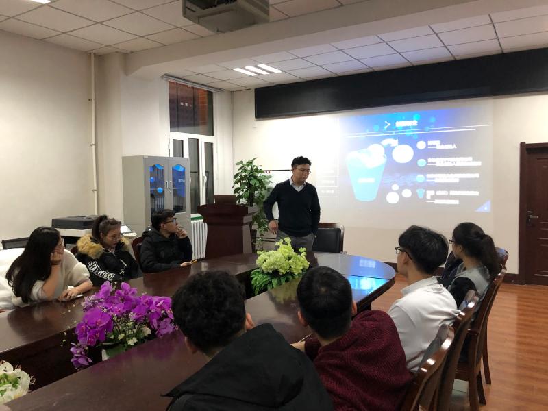 2019年创新人才推免研究生资格的郭彦波同学,与会同学纷纷表示了热烈的欢迎。本次座谈会主要分为六个主题。首先是个人经历,郭彦波通过创业经历、创业荣誉和个人奖项等方面的介绍,让同学们更加深入的了解了自己;第二个主题是互联网+医疗,郭彦波讲述了如今存在的医疗困境,并向大家介绍了大数据在医疗卫生行业的应用及目前存在的缺点,从而引出目前互联网+环境下,互联网和医疗卫生事业相结合的前景;第三个主题是AI与医疗,郭彦波详细生动地介绍了人工智能和未来医疗事业相结合所存在的可能性以及相关的应用领域,谈到了将AI应用到医疗领域的美好前景的认可和憧憬。随后,郭彦波同学通过形象的描述向大家阐述了什么是区域链以及区域链的现状,并且和人工智能行业相联系,预测了区域链的未来发展;在第五个主题大学成长中,郭彦波同学向在座的同学们描绘了自己心中的大学生活,用自己的亲身经历引导同学们思考自己应该怎样度过大学,告诉同学们要以学业为本,在保证学业的前提下积极参加社团活动,增加实习经历,养成独立思考的习惯。同学们在郭彦波同学的引导下陷入沉思。在最后一个主题专业展望中,他向同学们讲解了专业的前景,并送给了同学们十六字寄语:嘉言懿行,知行合一,坚如磐石,万物不侵。同学们都非常感谢郭彦波同学精彩且生动形象的讲解,不约而同的为他鼓掌致谢。在讲座的最后,郭彦波同学特意留下来为同学们进行专业前景和个人发展相关的答疑。在郭彦波同学结合自己经历的讲解下同学们都扫清了疑惑,也找到了自己的发展方向。郭彦波同学还特意嘱咐了同学们实习时的注意事项,并给同学们留了联系方式,告诉同学们在以后的学习生活中有疑问都可以用向他询问,这也让同学们对郭彦波同学倍感亲切。