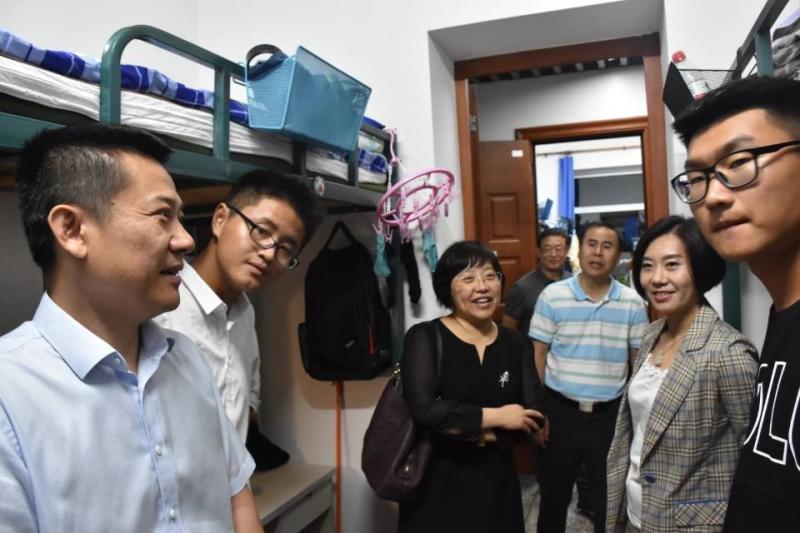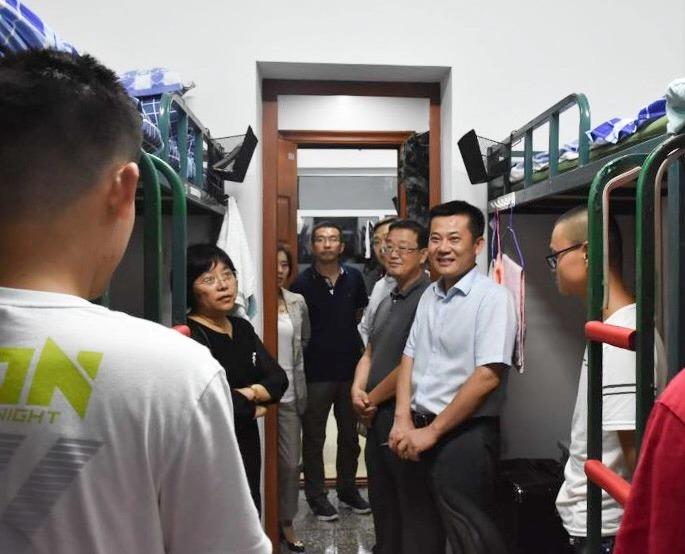 院长刘雅文,党委书记赵国利,副院长于洗河、魏国志、寇长贵,党委副书记兼副院长、2019级新生辅导员刘丽及全体辅导员,共同来到2019级新生宿舍进行走访慰问,为新生们带来了来自学院的温暖。