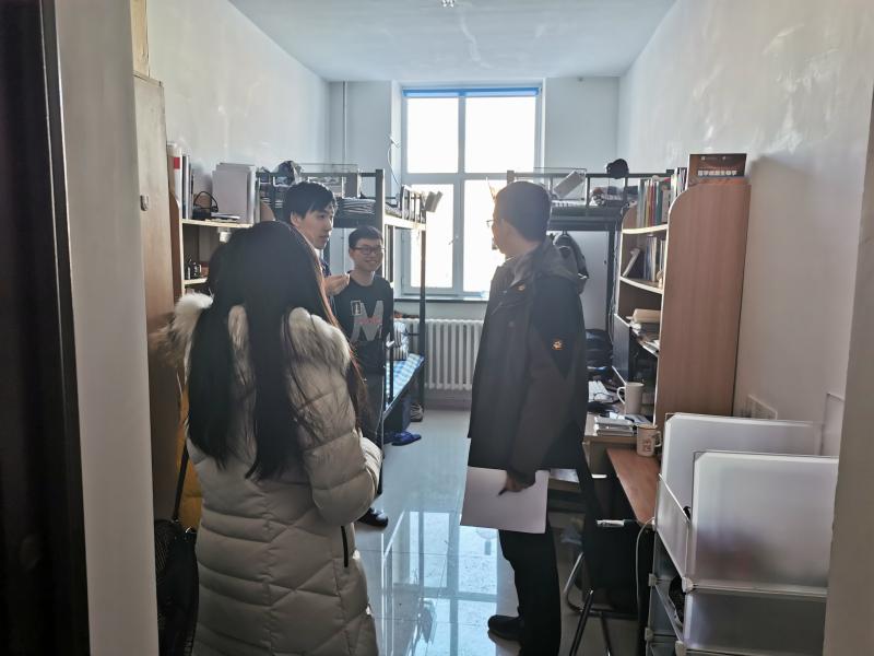 党委副书记兼副院长、2019级辅导员刘丽,学生工作办公室主任兼2015级、2018级辅导员苏国范,2016级辅导员霍睿,2017级辅导员冷贺璇及院学生会生活部成员参与查寝工作。