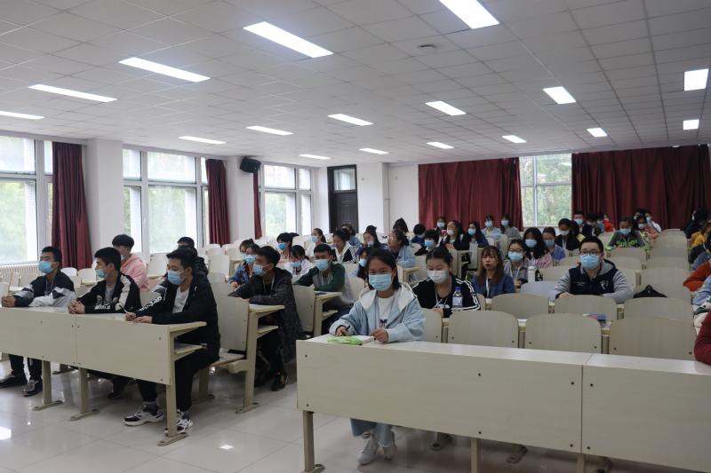 放射医学系主任金顺子教授,2020级辅导员冷贺璇及2020级放射医学全体新生参加本次会议。
