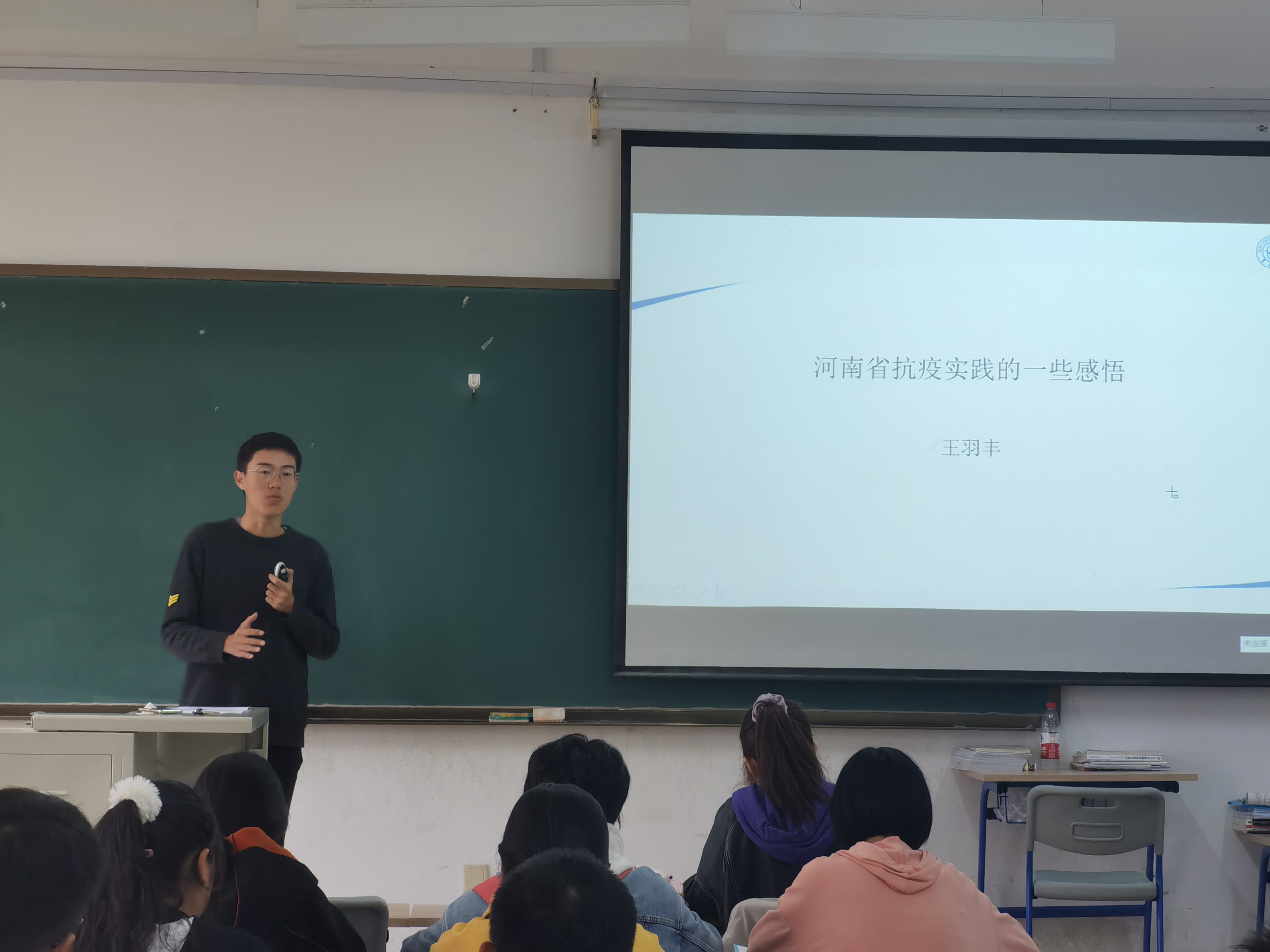 2020级预防四班于中心校区李四光楼108教室举办“共战疫情 爱国力行”主题班会活动,2020级辅导员冷贺璇及2020级预防四班全体同学参加了本次活动。