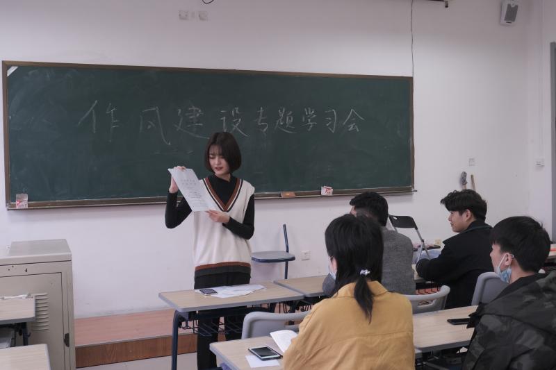 会议伊始,主席团成员宫千惠同学带领参与成员们宣读并深入学习了《关于学联学生会工作人员改进作风服务同学的若干规定》以及《关于落实共青团和学联对高校学生会(研究生会)指导管理责任的若干规定(试行)》两个文件。各参会人员学习到,学生会应坚持正确的政治方向,聚焦服务同学的职能,进一步发挥好学校联系同学的桥梁和纽带作用。同时要求建立好学生会工作人员行为规范,防止学生会出现脱离同学的功利化、庸俗化等倾向。进一步加强学生会深化改革,优化组织构架和规模,及时与学校沟通,报告有关情况。对学生会工作人员的管理要求总结为六点:恪守学生本分,牢记服务宗旨,永葆理想情怀,勤勉务实做事,营造平等氛围,摒弃庸俗习气。而后,主席团成员田宏远同学以及卞骏业同学关于学生会工作人员的学习情况以及作风建设精神要求发言,希望各位工作人员能够切实做到坚守服务初心,恪守学生本分,同时以自身做好表率作用,引导同学们努力学习,不负大好时光。