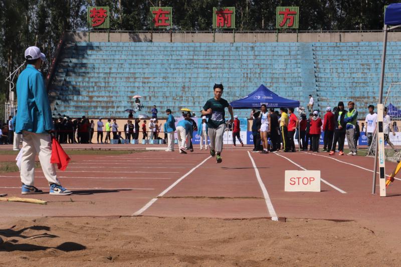 比赛开始前,庞玉琦同学提前充分热身,用最饱满的精神状态迎接比赛。比赛中,各学院参赛选手们依次上前,全力奔跑,腾空向前,争取为学院取得荣誉。庞玉琦同学也不甘示弱,每一次的跳跃都刷新了原有的成绩,即使在太阳的暴晒下,他也拼尽全力,永不放弃。然而很遗憾,庞玉琦同学最终未能获得奖牌,但是其坚持不懈的精神仍然值得学习!