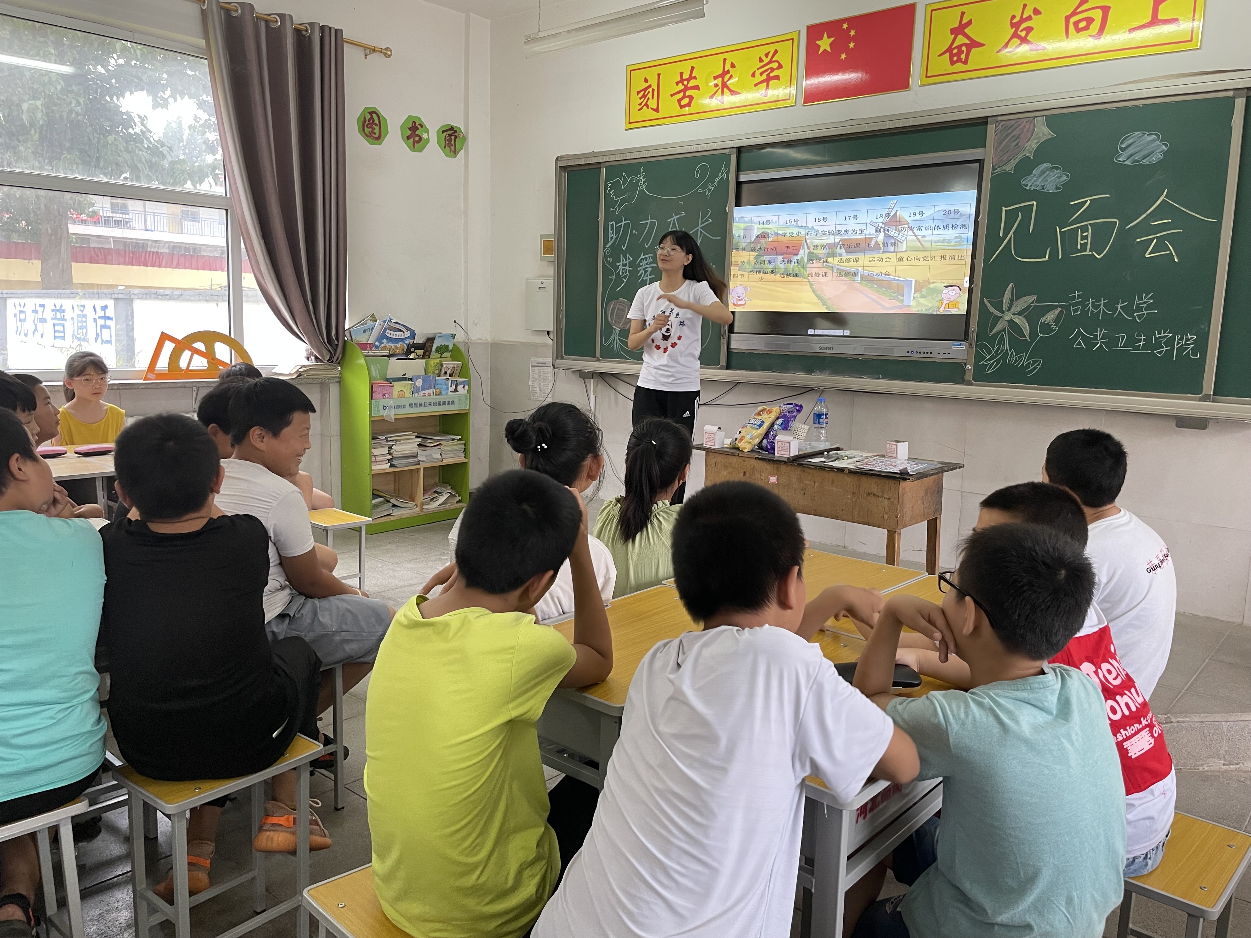 早上8:30,支教第一课——“助力成长,梦舞吉大”见面会正式开始。志愿者们向孩子们详细介绍了禁漫天堂