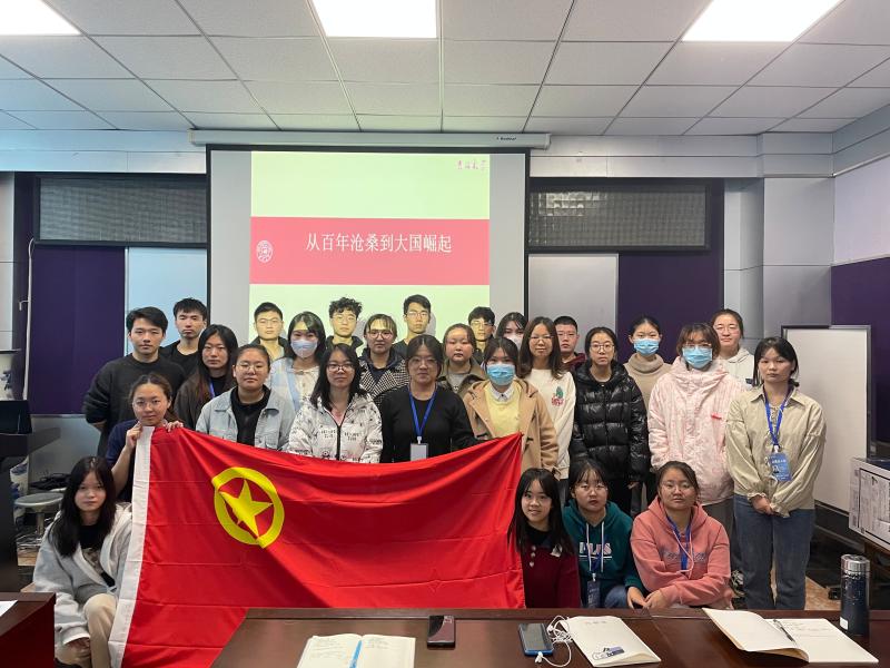 会议从三个方面讲述了中国从衰落到崛起的过程。首先,会议从封建制度的腐朽、外国入侵、中国凝聚力匮乏以及统治阶级中的精英层叛变投敌等方面讲述了近代中国的衰落。接着,会议从学习西方的军事和科技、学习西方的社会政治、经济制度、学习西方的思想文化三方面讲述了中国共产党诞生前中华民族的抗争。最后,会议以中国共产党诞生为起点,讲述了中华民族崛起的过程。随着主持人的讲述,同学们在回顾中国近代历史的过程中,深切感受到了处于战火纷飞的中国人民所受的苦难,也更加明白了是中国共产党挺起脊梁,带领中国人民走在中华民族伟大复兴的康庄大道上。