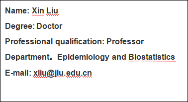 2001.09-2006.09 School of Public Health, Jilin University, Lecturer